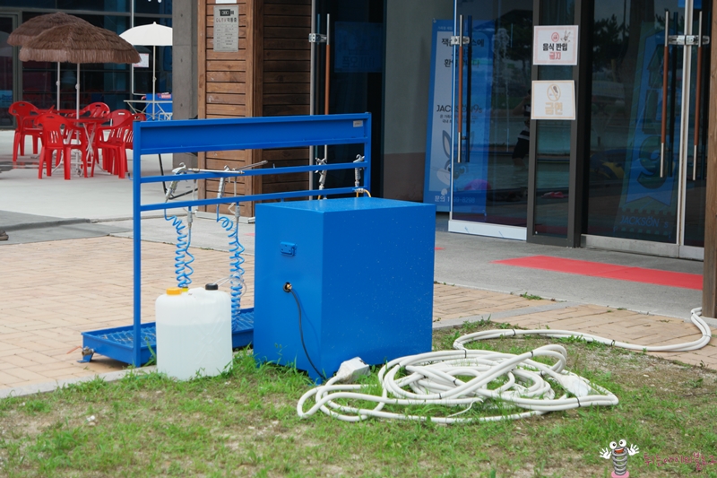 나중에 안 사실인데 해수욕장 들어가기 전에 이렇게 바람넣는 곳이 있더군요. 튜브바람넣을 때 무료로 넣을 수 있는 곳이었어요. 저는 해수욕장에서 유료로 바람을 넣었어요. 이제 바람넣는 장비를 샀으니 다음부터는 돈이 들지 않겠네요.