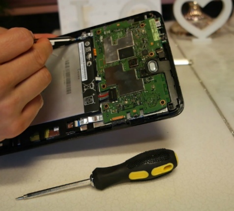 아님 터치펜이 있었던 자리에 일자드라이버를 통째로 넣고 벌려줍니다.